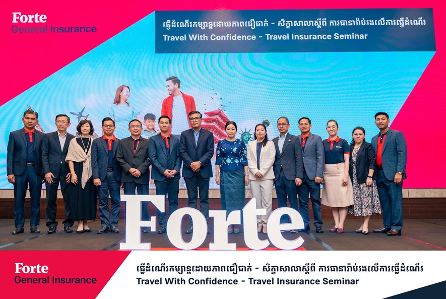 Last Friday, Forte had the pleasure of hosting a seminar on 'Travel with confidence' focusing on the significance of travel insurance.This seminar was joined by 100 representatives from various travel firms and presided over by the President of the Cambodia Association of Travel Agents, Lok Chum Teav Chhay Sivlin, and the Group CEO of Forte, Mr. Youk Chamroeunrith. This seminar aimed to strengthen the tourism sector in Cambodia by emphasizing the importance of insurance in protecting their customers and businesses. We are so thankful for having Lok Chum Teav Chhay Sivlin and all our esteemed guests at our event.