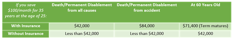 But what if an unfortunate occurrence happens to you before you turn 60 years old? With Life Insurance, your family will receive your last parting gift of $42,000 or $84,000 even though you have not reached your savings goal yet. This is for them to cover immediate expenses that they did not expect to have.