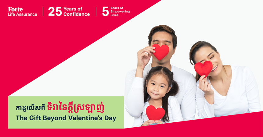 នៅក្នុងទិវានៃក្តីស្រឡាញ់នេះ ការផ្តល់ក្តីស្រឡាញ់ តាមរយៈ ការសន្សំ ឬទិញសេវាធានារ៉ាប់រងអាយុជីវិតចូនក្រុមគ្រួសារ គឺជាកាដូដែលពុំអាចកាត់ថ្លៃបាន ព្រោះនេះ សបញ្ជាក់ពីការគិតគូរបស់លោកអ្នក ទៅលើការការពារអនាគតហិរញ្ញវត្ថុរបស់គ្រួសារ។ ថ្វីត្បិតតែ វាមើលទៅហាក់ដូចជាធម្មតា ប៉ុន្តែការមានធានារ៉ាប់រងអាយុជីវិតនេះ បានឆ្លុះបញ្ចាំងយ៉ាងច្បាស់អំពីទំហំ ឬទង្វើនៃសេចក្ដីស្រឡាញ់ដ៏ជ្រាលជ្រៅ និងដ៏ពិតប្រាកដរបស់លោកអ្នក ចំពោះមនុស្សជាទីស្រឡាញ់ ដើម្បីធានាពួកគាត់នូវសុខុមាលភាពដ៏យូរអង្វែង។